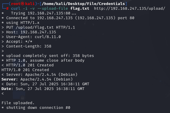 اگر وب سایت چلنجینو رو بخونیم، میبینیم درخواست کرده که فایلی که آپلود میکنیم در این دایرکتوری به نام flag.txt باشه، پس از دستور زیر استفاده میکنیم و یه فایل با این نام آپلود میکنیم ببینیم میشه یا نه.