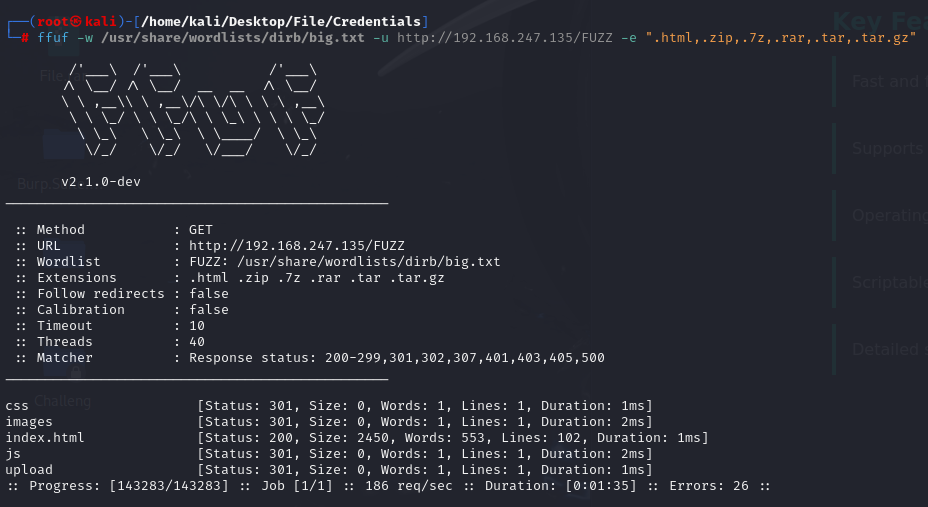 خب اینجا من به سراغ ابزار fuff رفتم، صرفا چون ساده تر بود برای من، ورد لیست رو میدیم و صبر میکنیم.